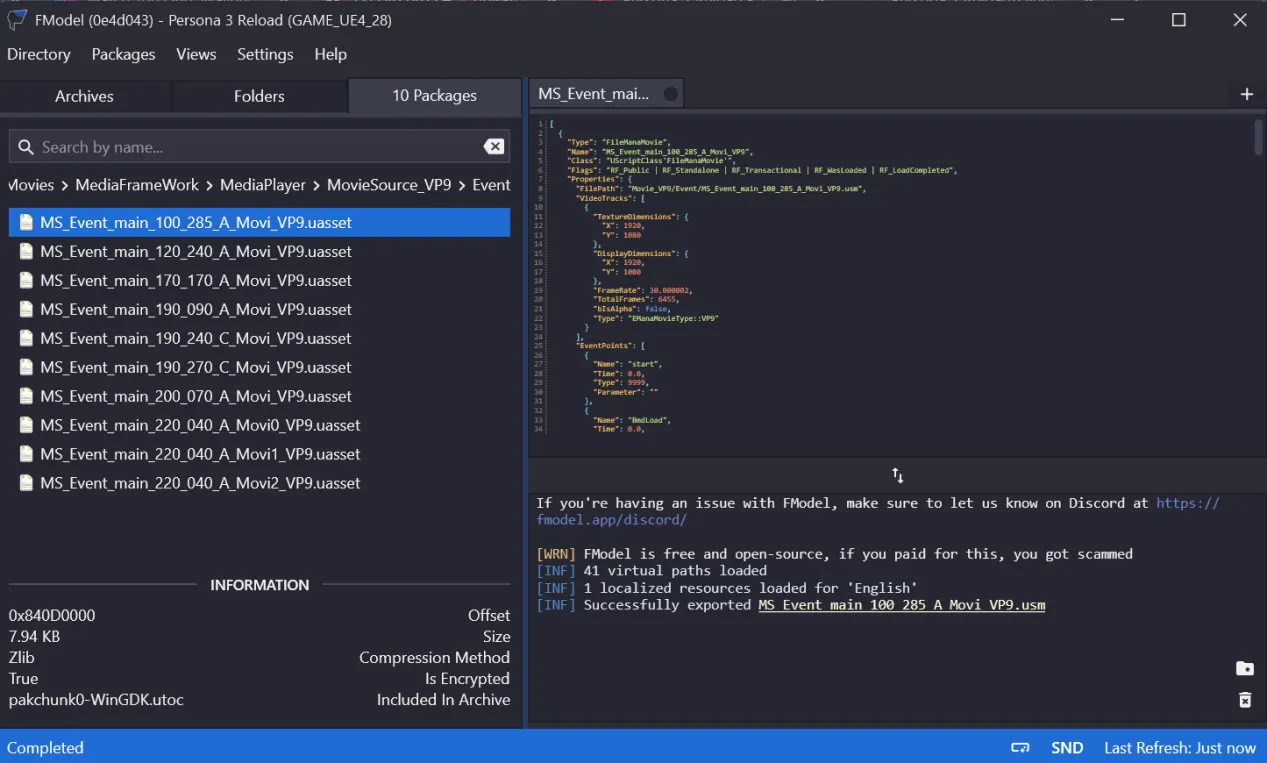 - Open FModel and navigate to P3R/Content/Xrd777/Movies/MediaFrameWork/MediaPlayerMovieSource_VP9.