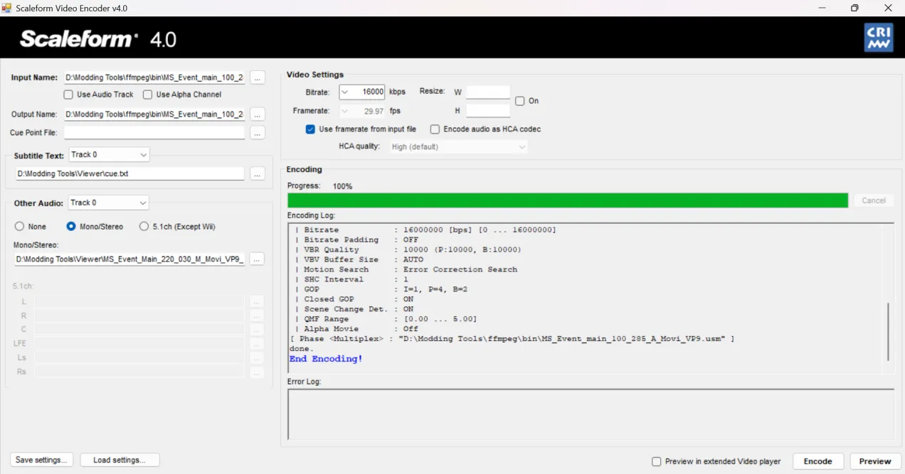 - Open Scaleform/Sofdec Encoder, and import the video source.